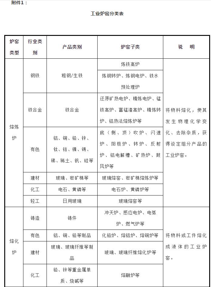 涉工業爐窯類產業集群主要包括陶瓷、玻璃、磚瓦、耐火材料、石灰、礦物棉、鑄造、獨立軋鋼、鐵合金、再生有色金屬、炭素、化工等行業。各地應結合當地產業發展特征等自行確定。