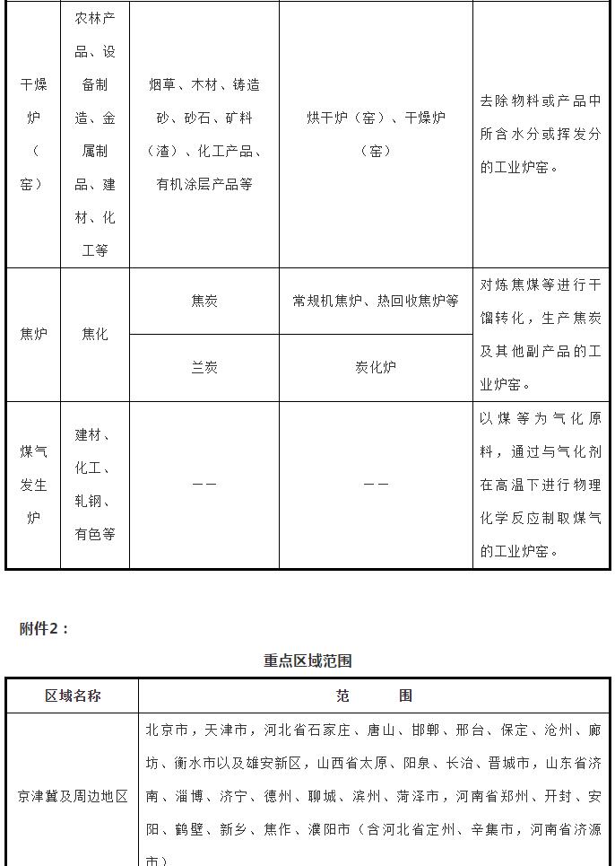 (一)主要目標。到2020年,完善工業爐窯大氣污染綜合治理管理體系,推進工業爐窯全面達標排放,京津冀及周邊地區、長三角地區、汾渭平原等大氣污染防治重點區域(以下簡稱重點區域,范圍見附件2)工業爐窯裝備和污染治理水平明顯提高,實現工業行業二氧化硫、氮氧化物、顆粒物等污染物排放進一步下降,促進鋼鐵、建材等重點行業二氧化碳排放總量得到有效控制,推動環境空氣質量持續改善和產業高質量發展。