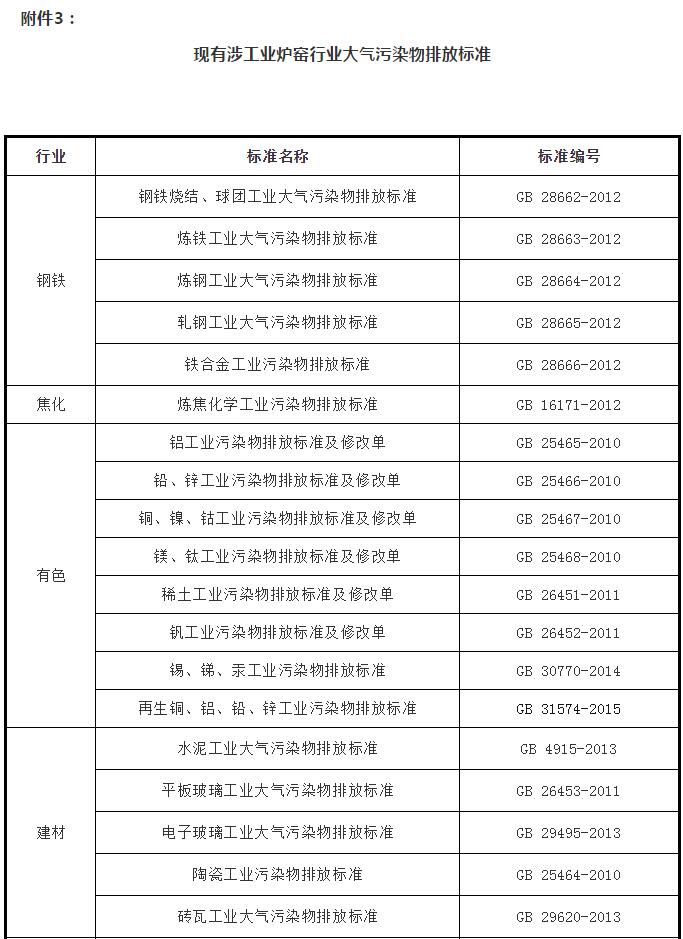 3.現有涉工業爐窯行業大氣污染物排放標準